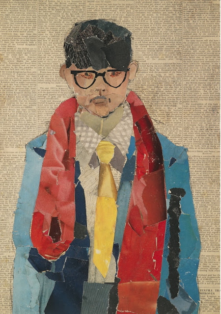That point is clear from one of the earliest works on view in the Morgan exhibition. Self Portrait, 1954 is a collage on newsprint, made when Hockney was just seventeen. It was created by cutting-up glossy magazine pictures and using the "bits" to piece together an impressionistic image of himself.