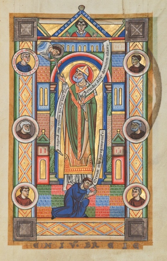 Miniature showing St. Bernward, Stammheim Missal, c. 1170. J. Paul Getty Museum, MS 64, fol. 156r.