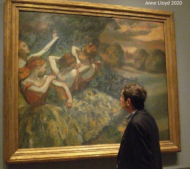 Anne Lloyd, Photo (2020) Gallery view of the Degas at the Opera Exhibition, showing Degas' Four Dancers, c. 1899. Oil on canvas overall: 151.1 x 180.2 cm (59 1/2 x 70 15/16 in.) National Gallery of Art, Washington, Chester Dale Collection